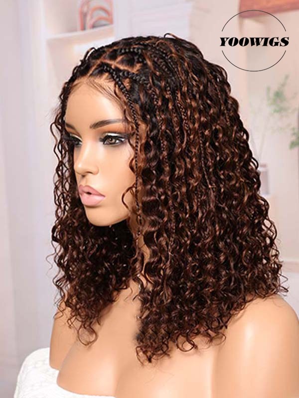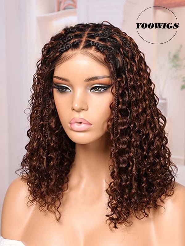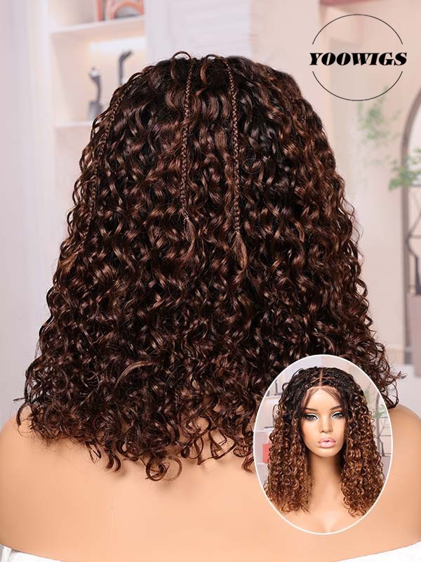 YOOWIGS Boho Braided Curl Wig Medium Brown Ombre Most-Fit 5x5 HD Lace Closure Protective Style Glueless Wig for Women BRAID08