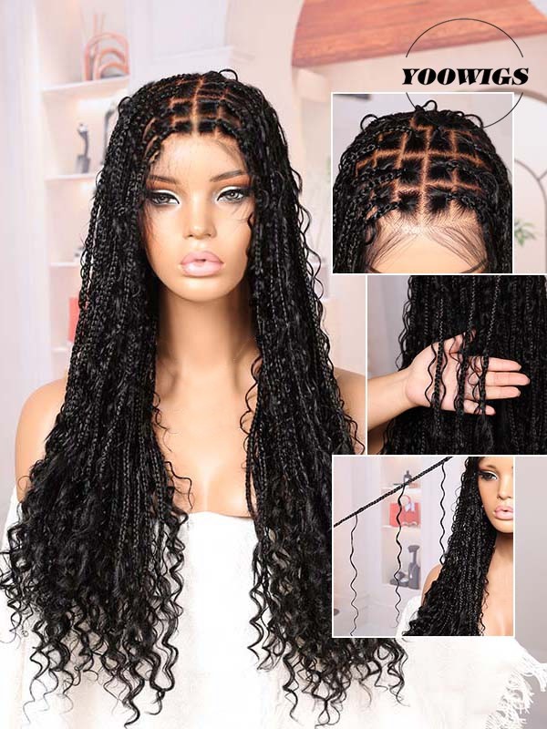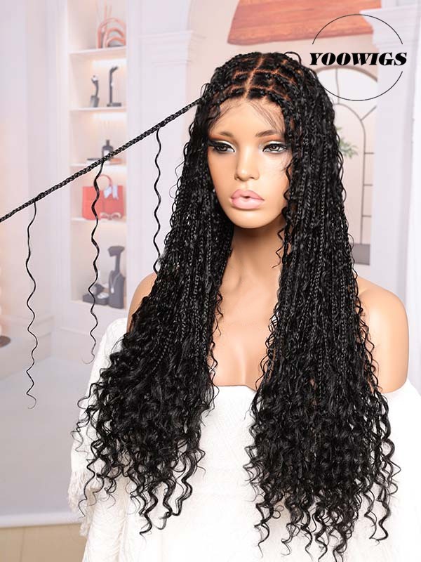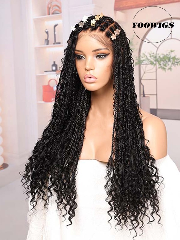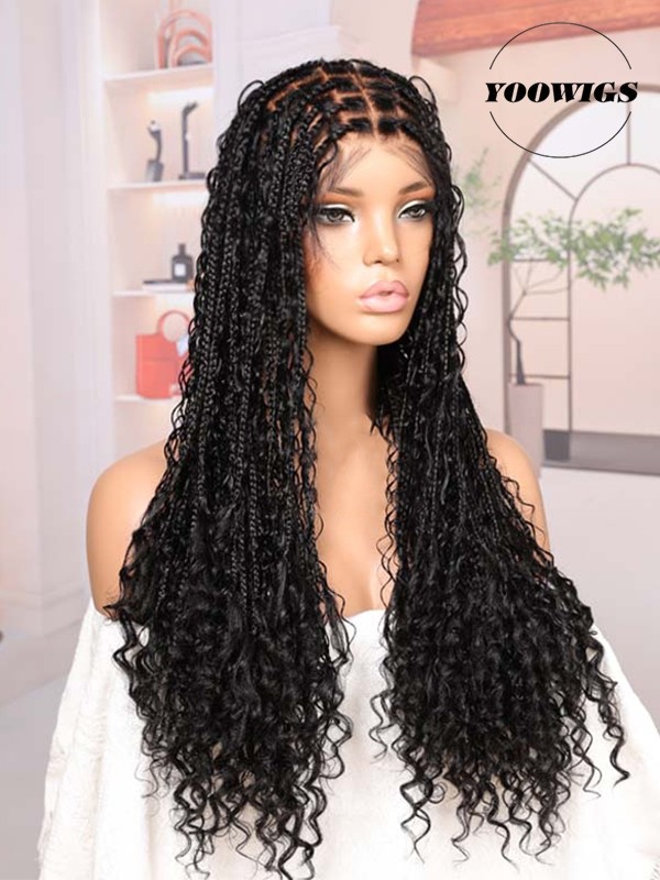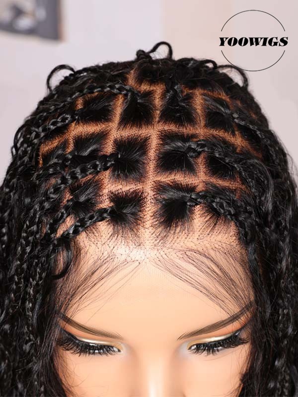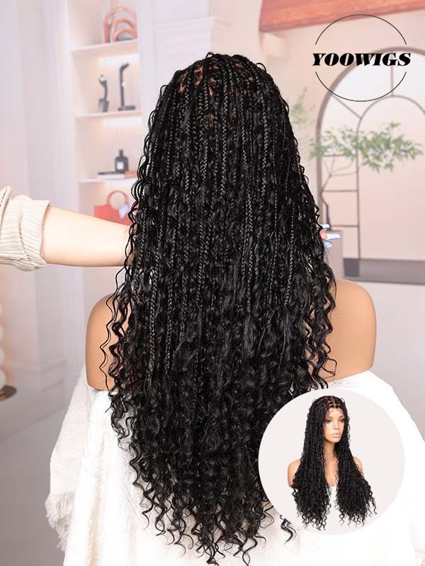 Hair Texture: Knotless braids with boho human-hair curls