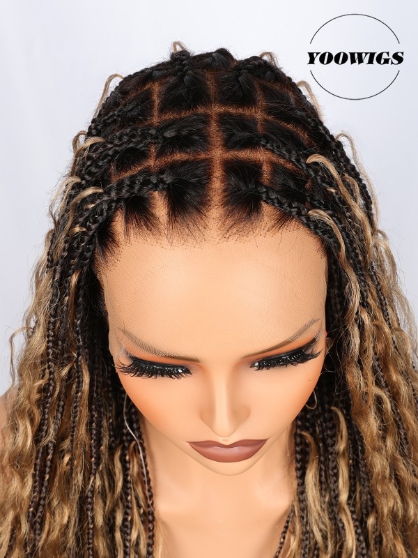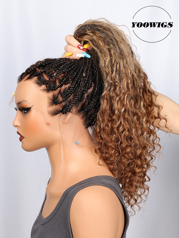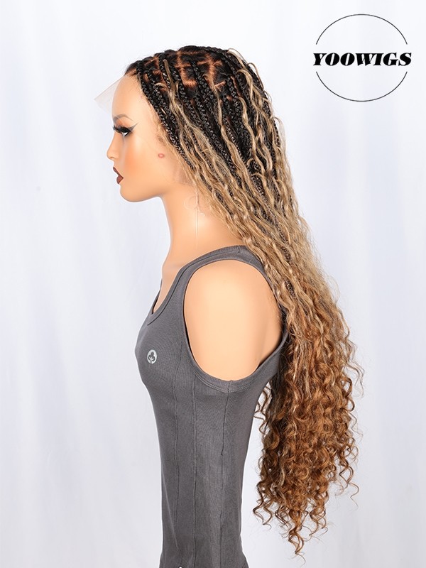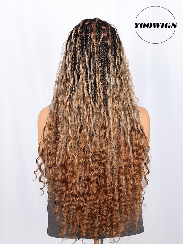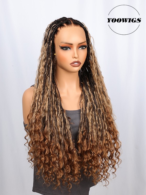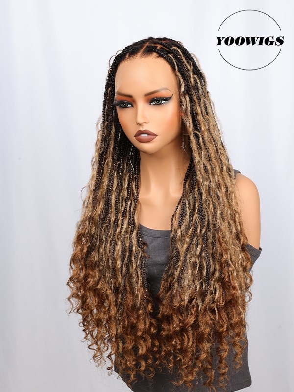 YOOWIGS Boho Knotless Braid Wig HD Full Lace Three Color Ombre Lightweight Goddess Look with Human Hair Curls BRAID11