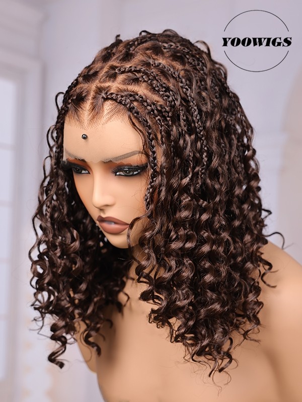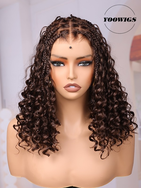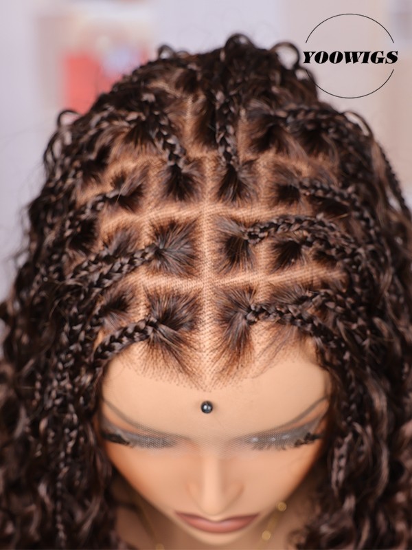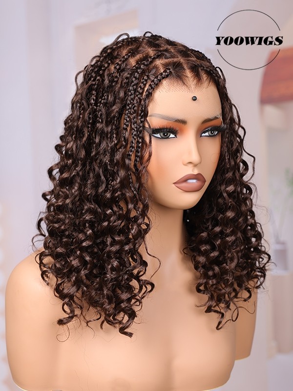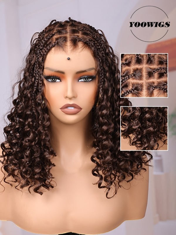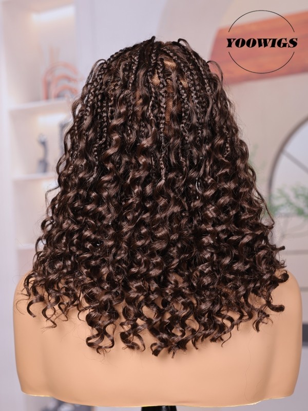 YOOWIGS Most-Fit Cap HD Full Lace Braided Wig with Human Hair Curls Brown Color Salon Stylist New Design BRAID10